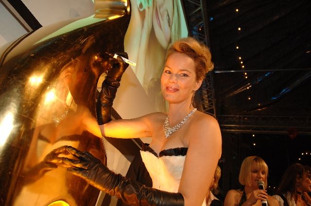 Gold-Kitz bei Douglas 2007 Event in Kitzbühel, bei der Douglas den Verein CF-Team mit dem Kauf eines Goldenen Kitz unterstützt....